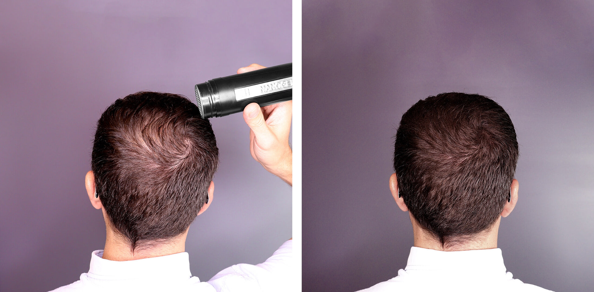 Solo tienes que aplicar las fibras sobre las zonas con menos cabello y ver cómo las entradas y huecos se disimulan al momento.